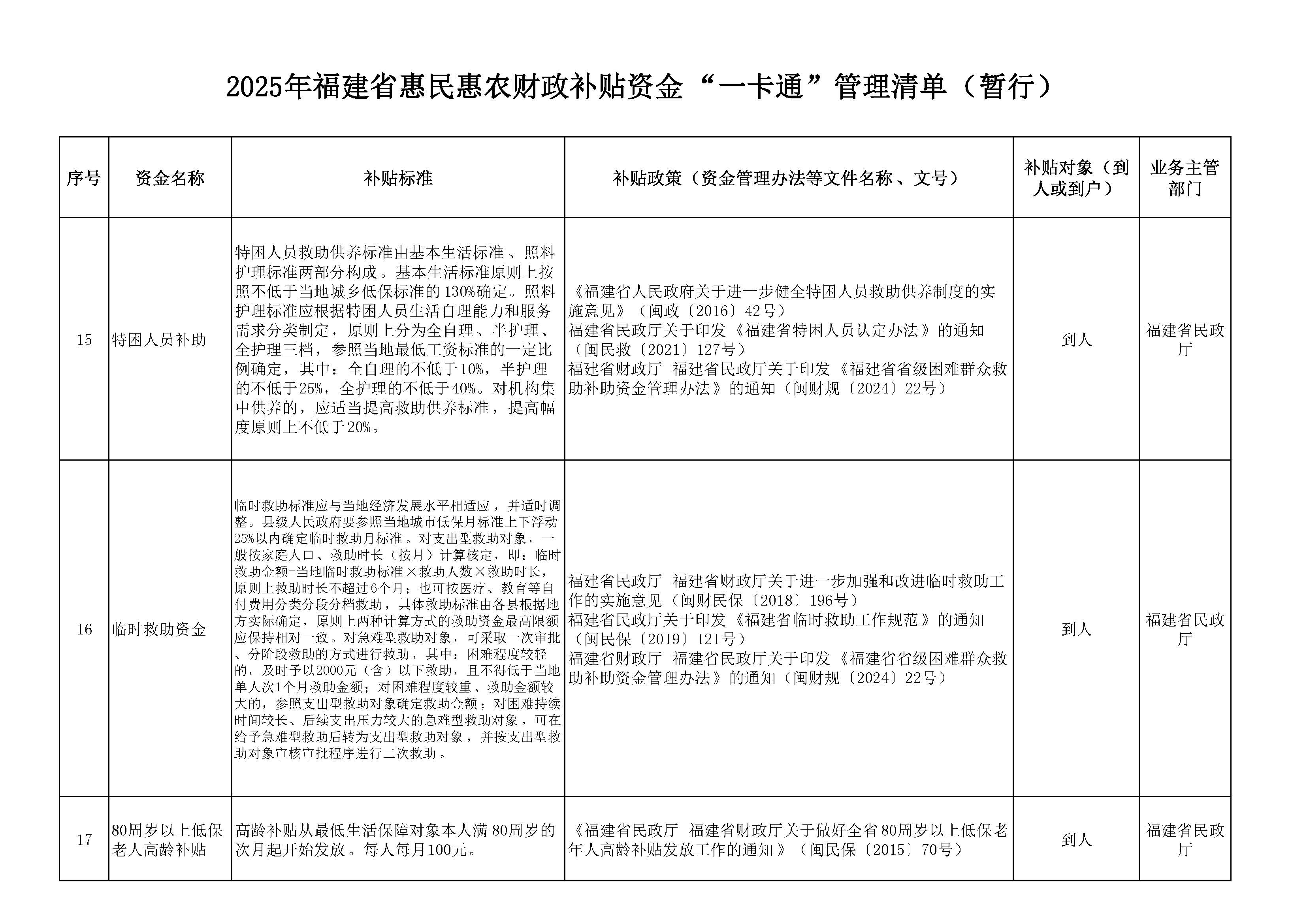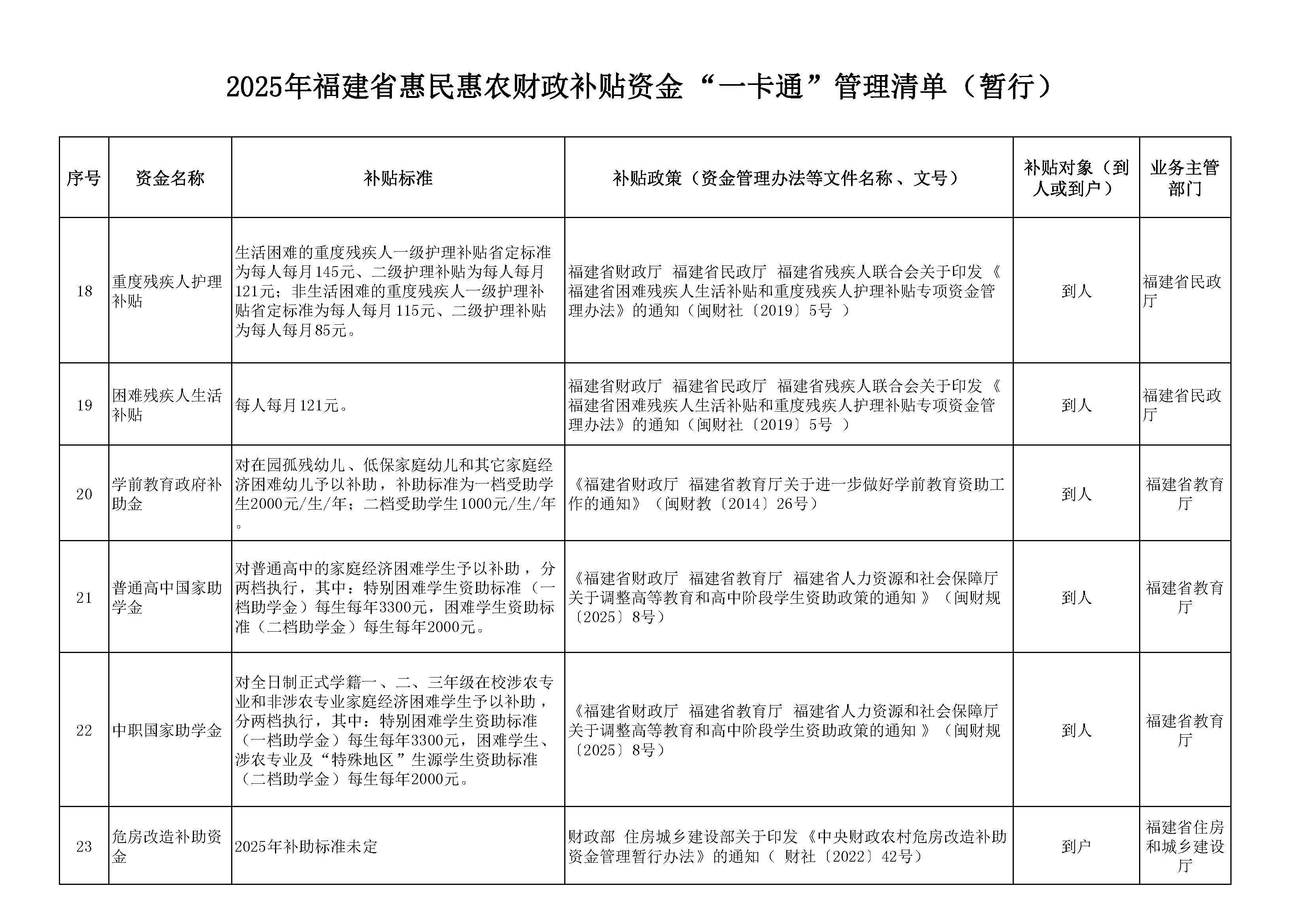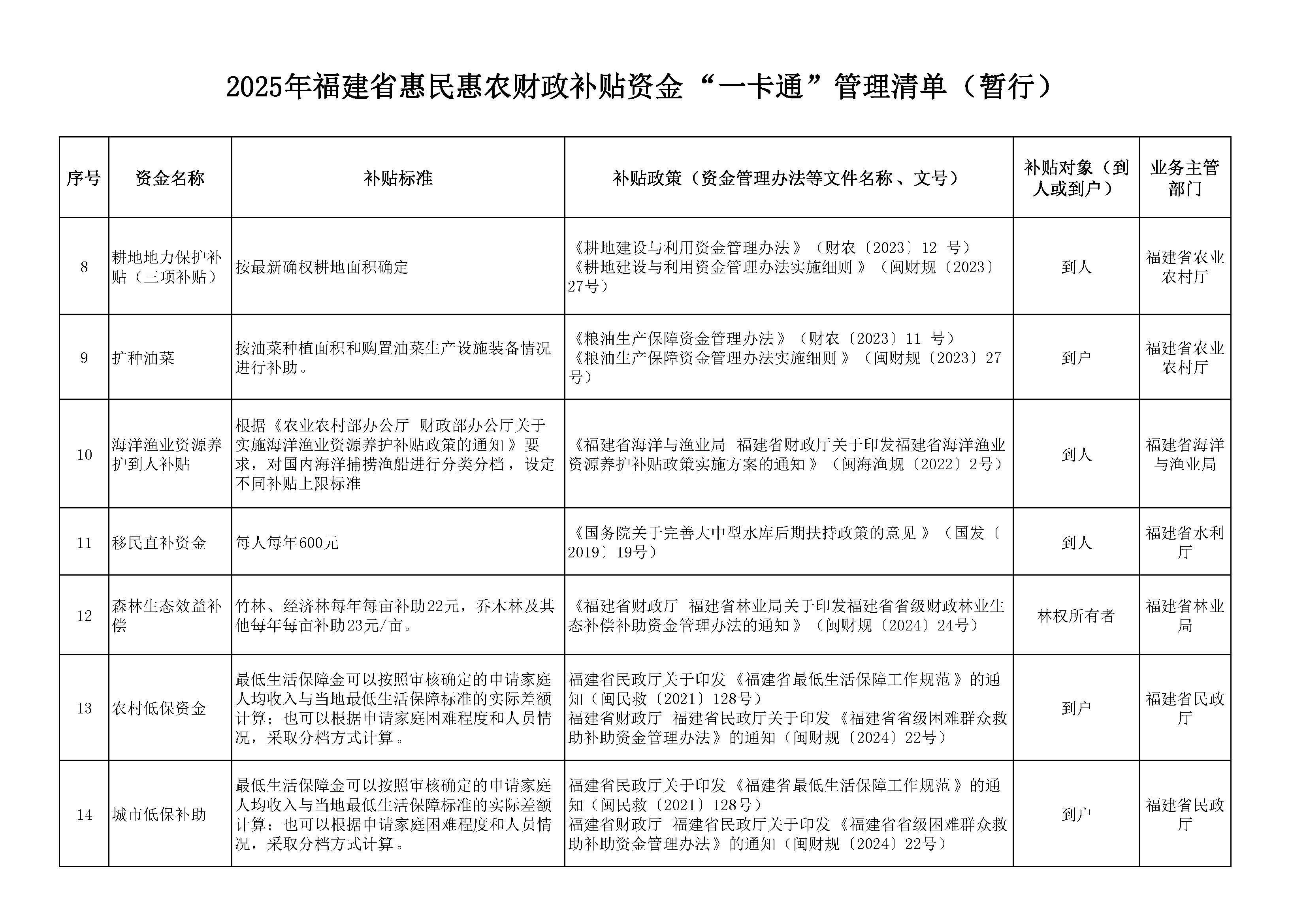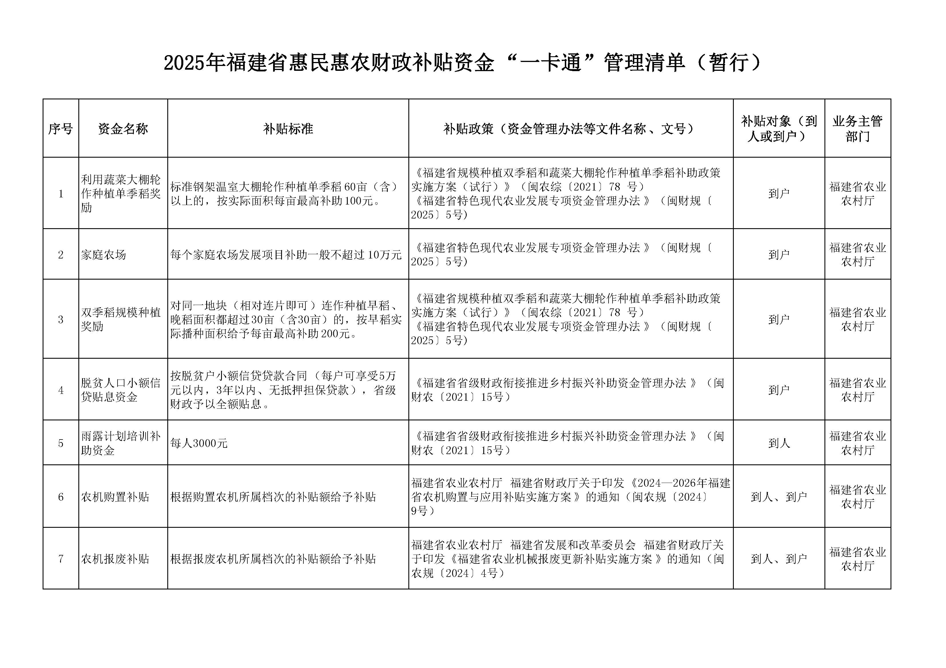 2025年福建省惠民惠农财政补贴资金“一卡通”管理清单(暂行)